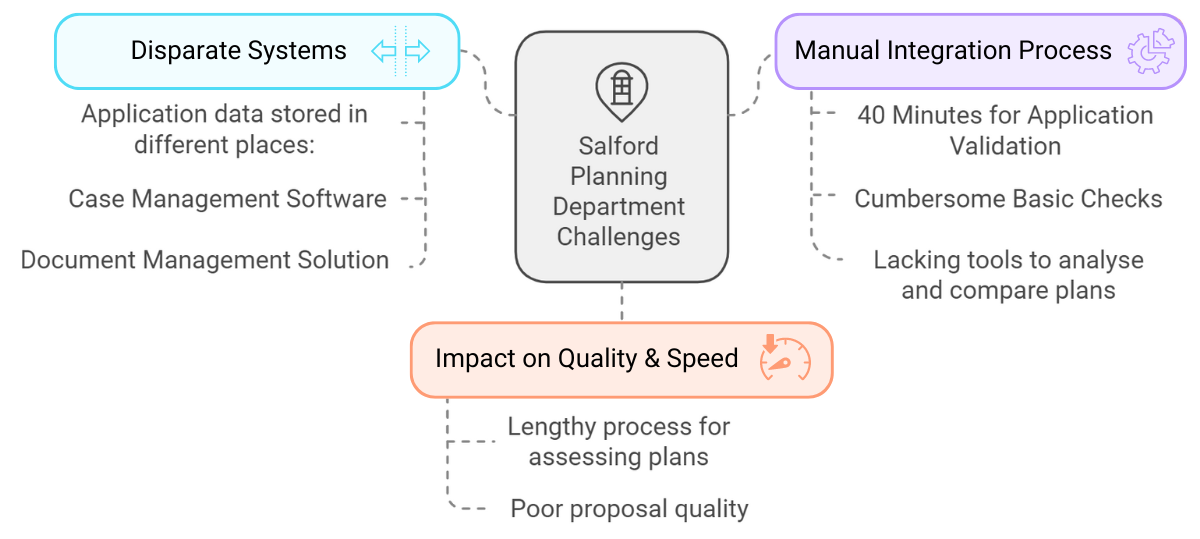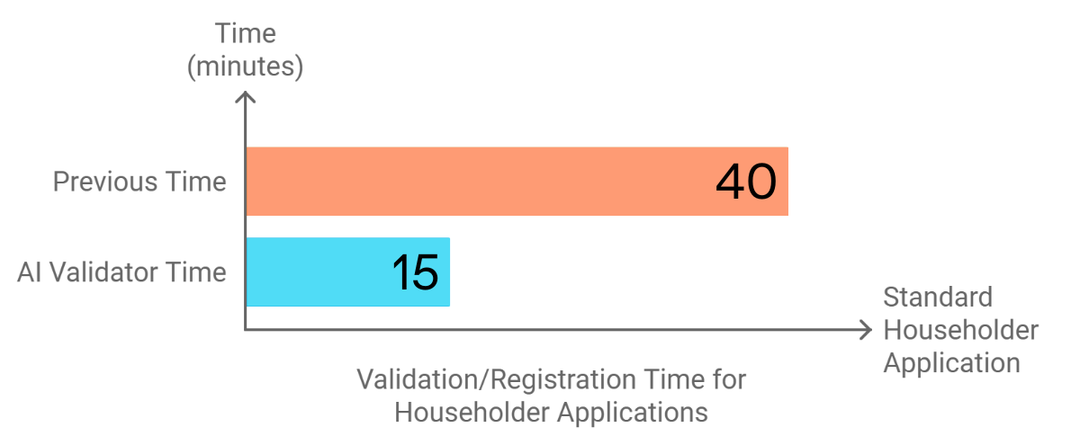 The integration of the Agile AI Validator into the other software solutions has drastically reduced the standard validation/registration time from 40 minutes to just 15 minutes for a standard householder application. AI Validator’s ability to seamlessly integrate with various back-end systems, enhancing flexibility and ensuring compatibility with different software environments provides planning authorities the opportunity to maximise AI adoption without changing their back-office solution, thus taking advantage of ground breaking technology with no risk or concerns or integration compatibility.